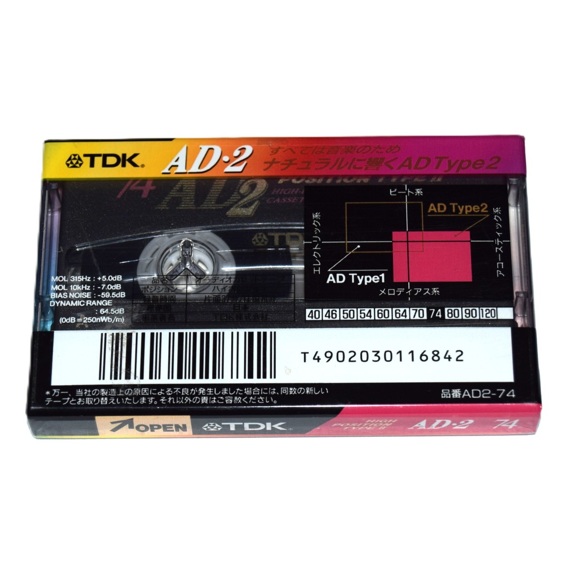 Cinta de caseette virgen de la marca TDK AD Type2. Posición II High. Fabricada en Japón.