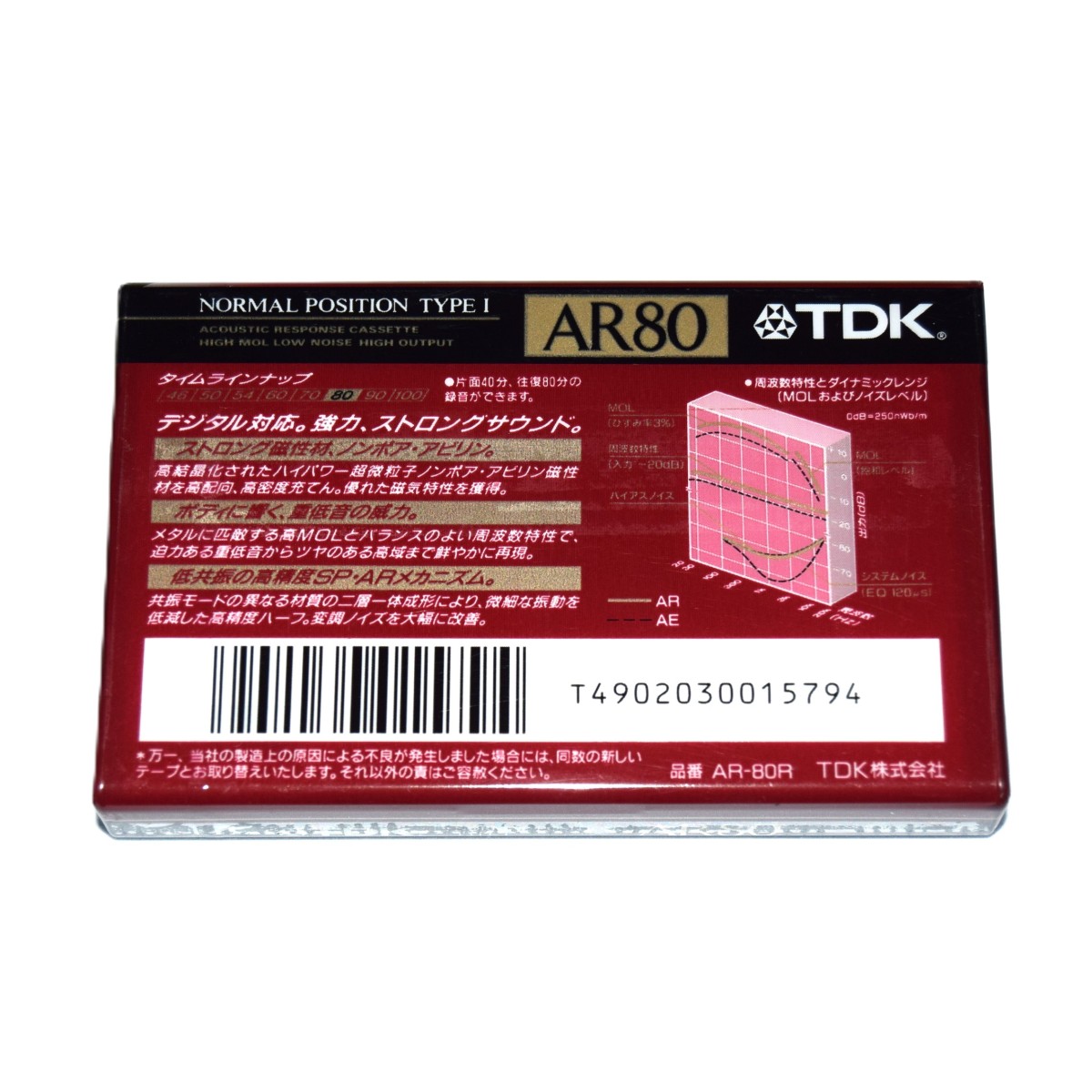 Cinta de caseette vírgen de la marca TDK AR. Posición Normal. Fabricada en Japón.