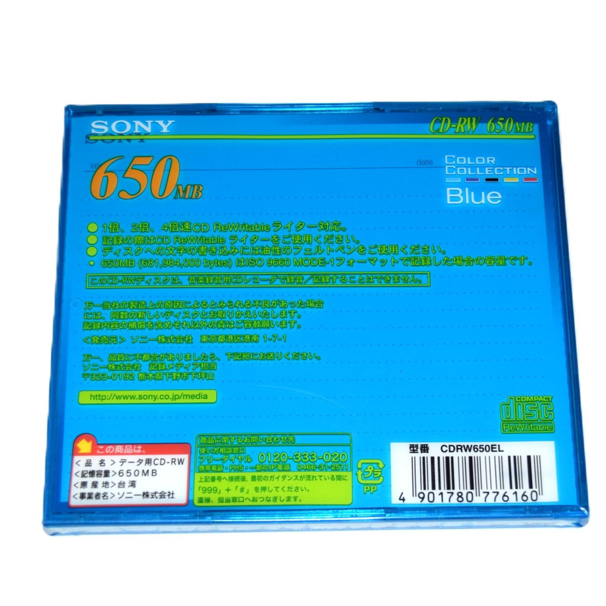 CD-RW virgen de 650Mb 4x Sony. Color azul.
